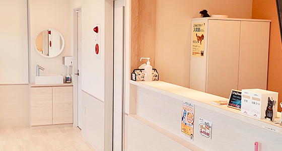 受付には手洗いリードフック、ウォーターサーバー、TV、雑誌などご用意しています。